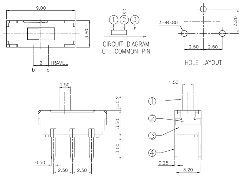 微型撥動開關(guān)技術(shù)參數(shù):
