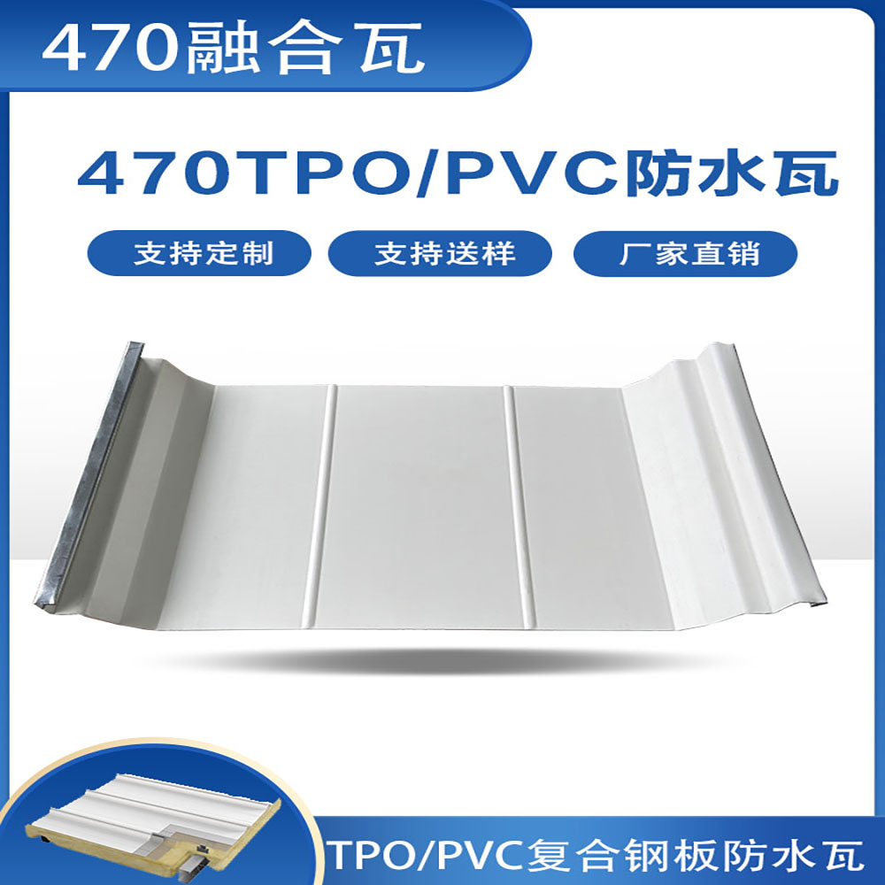 TPO/PVC鋼塑復合防水瓦以鋼板為基板,表面貼覆具有防水防腐功能的TPO/PVC卷材(熱塑性聚烯烴類防水卷材),是一款防水防腐屋面建筑材料。TPO/PVC鋼塑復合防水瓦主要特點就是在各類環境下不易生銹不易漏水,使用熱風焊接進行相連,覆蓋全部裸露的縫隙,在使用過程中可以達到蓄水不滲透的效果,防水效果好,同時還有較好的抗風揭性能和耐老化性