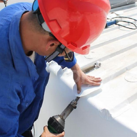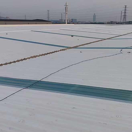 海美防水瓦以鋼板為基板,表面貼覆具有防水防腐功能的TPO/PVC卷材(熱塑性聚烯烴類防水卷材),是海美金屬推出的新一代防水防腐屋面建筑材料。海美防水瓦主要特點就是在各類環境下不易生銹不易漏水,使用熱風焊接進行相連,覆蓋全部裸露的縫隙,在使用過程中可以達到蓄水不滲透的效果,防水效果好,同時還有較好的抗風揭性能和耐老化性能,為鋼結構建筑屋面提供了長久的防護。