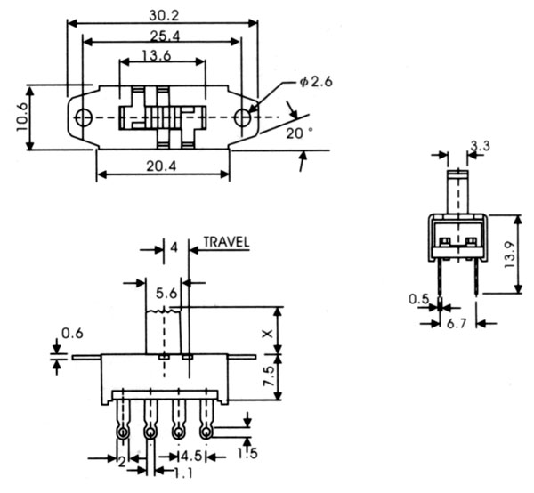 當前位置:撥動開關 >> 舊版產品 >> 豎柄撥動開關 >> 撥動開關SS-23H25